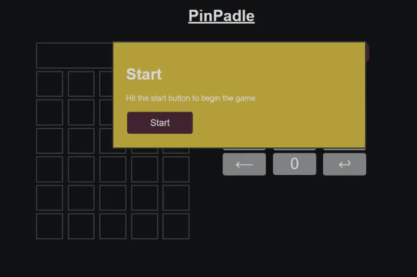 After the pin is generated, the start popup is hidden for the remainder of the game.